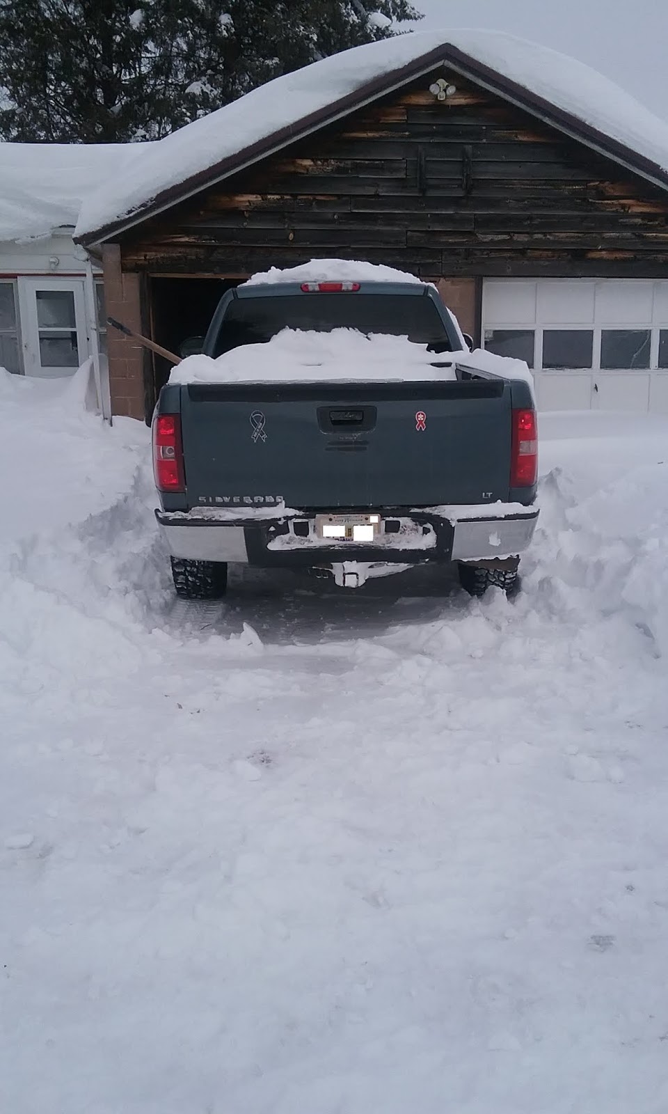 During the midst of the snow storm, Sue B went out to plow - bless her heart - and then she got stuckeded. So she called me and asked me to come pull her out of her stuckeded. I told Sue B that I had gotten plowed and couldn't make it out of the driveway, to which she replied: "JUST GUN IT!" - and that is how I got stuckeded. Took me two days to dig out.